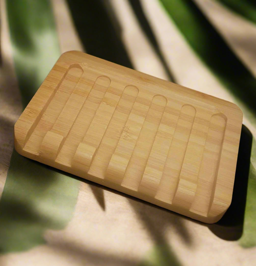 Also included is a bamboo soap dish to hold your soap and brush.